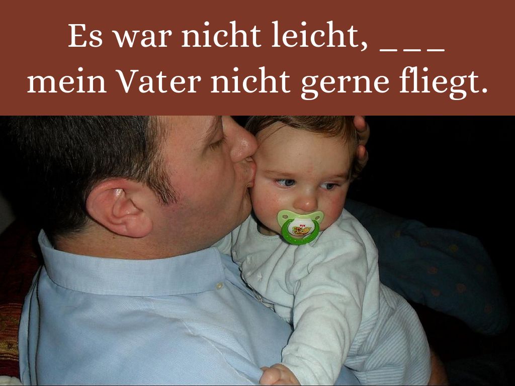 Es war nicht leicht, ___ mein Vater nicht gerne fliegt.
