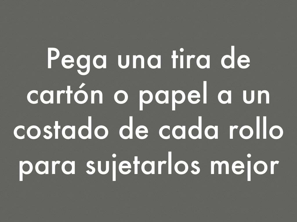 Pega una tira de cartón o papel a un costado de cada rollo para sujetarlos mejor