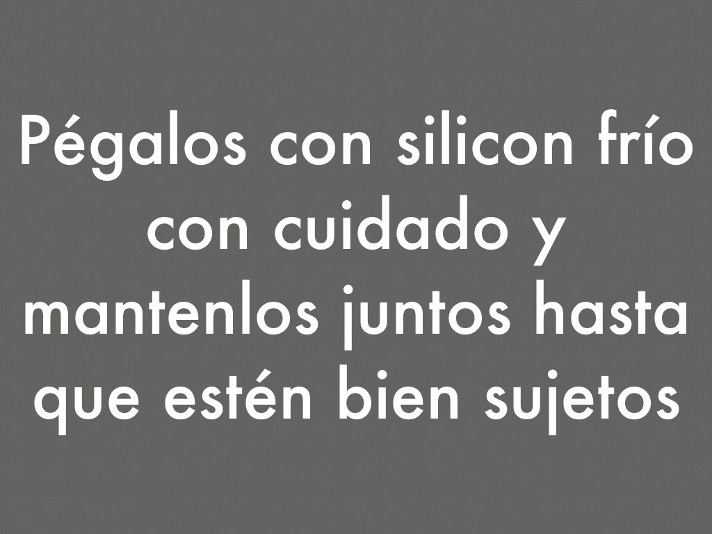 Pégalos con silicon frío con cuidado y mantenlos juntos hasta que estén bien sujetos