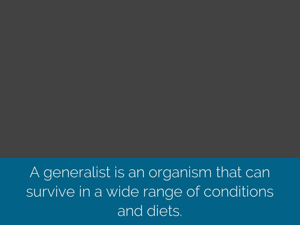 A generalist is an organism that can survive in a wide range of conditions and diets.