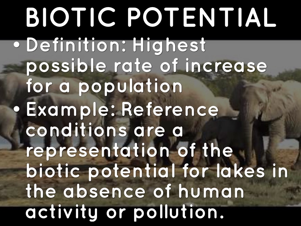 Example: Reference conditions are a representation of the biotic potential for lakes in the absence of human activity or pollution.