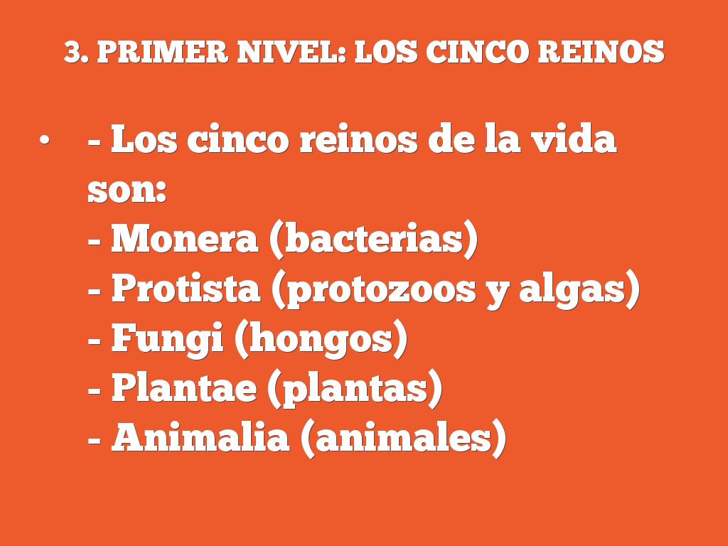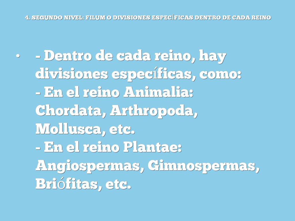 4. Segundo nivel: Filum o divisiones específicas dentro de cada reino