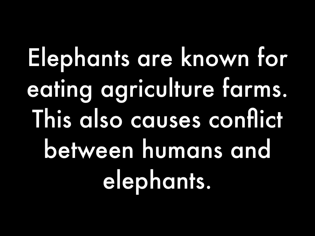 Elephants are known for eating agriculture farms. This also causes conflict between humans and elephants.