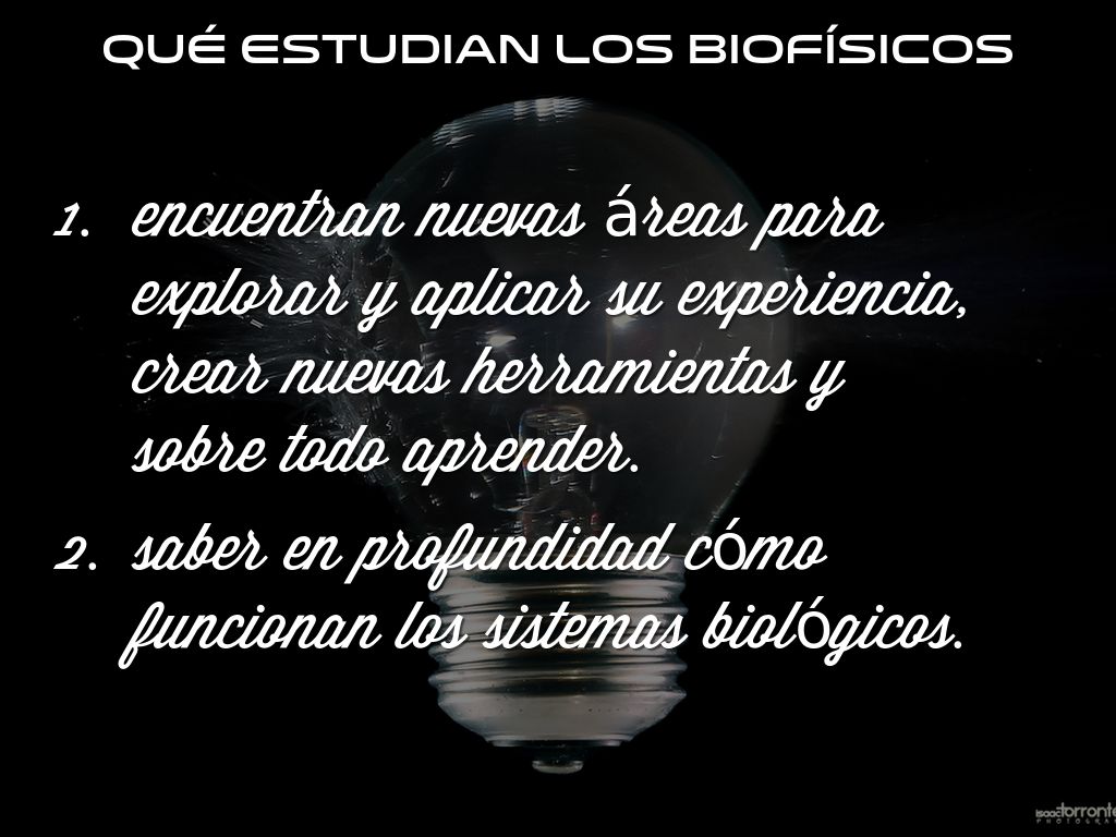 Estudia la vida en todos sus niveles, desde los átomos y moleculas hasta las células, organismoa y ambiente. A medida que progresa la física y la biología