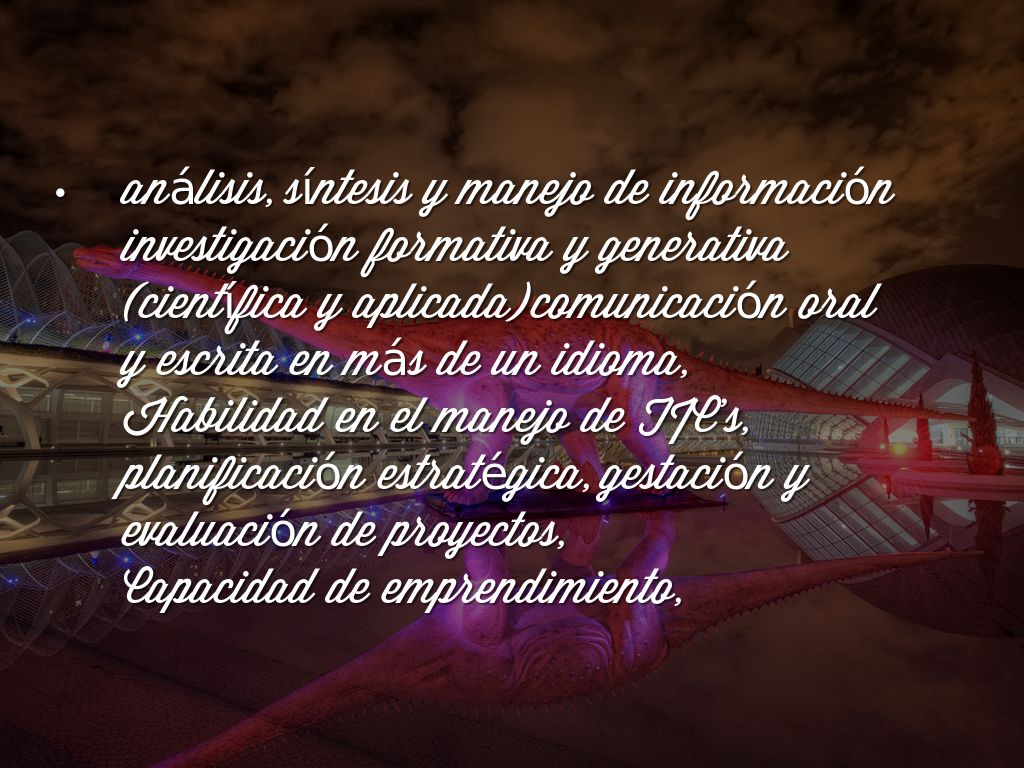 Habilidad en el manejo de TIC’s, planificación estratégica, gestación y evaluación de proyectos,