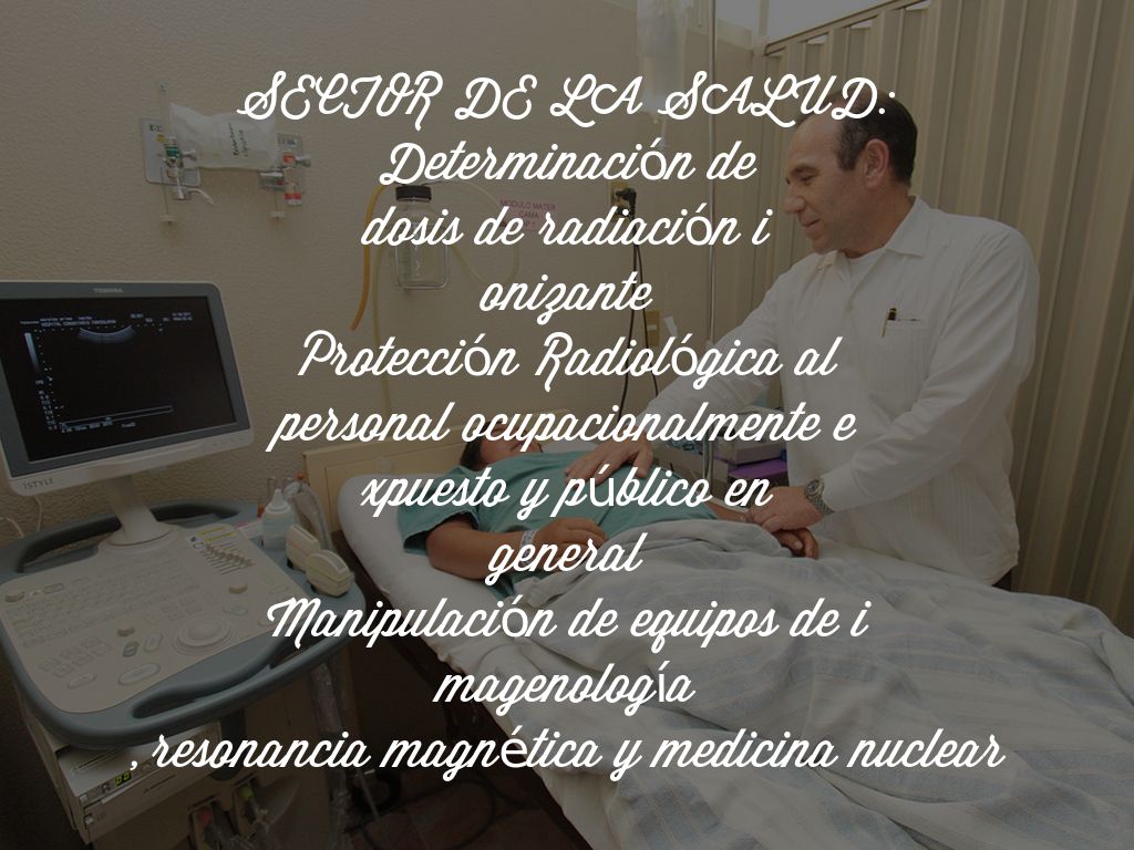 SECTOR DE LA SALUD: Determinación de dosis de radiación i onizante Protección Radiológica al personal ocupacionalmente e xpuesto y público en general Manipulación de equipos de i magenología , resonancia magnética y medicina nuclear