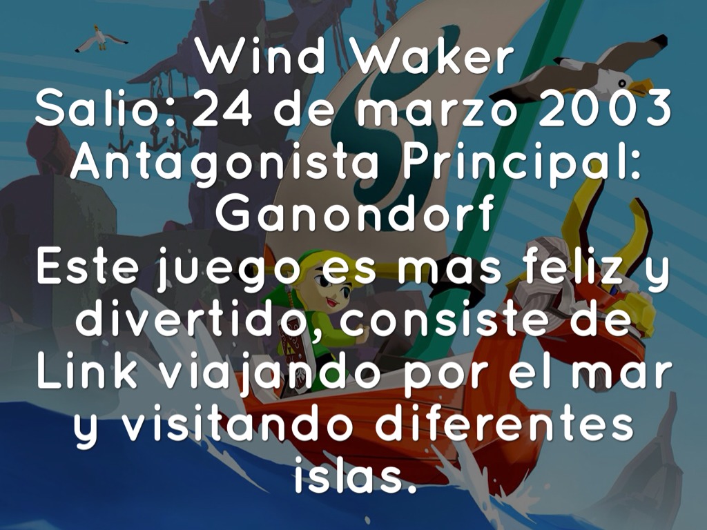 Este juego es mas feliz y divertido, consiste de Link viajando por el mar y visitando diferentes islas.