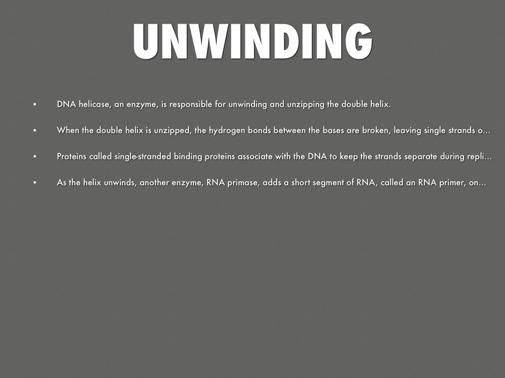 DNA helicase, an enzyme, is responsible for unwinding and unzipping the double helix.