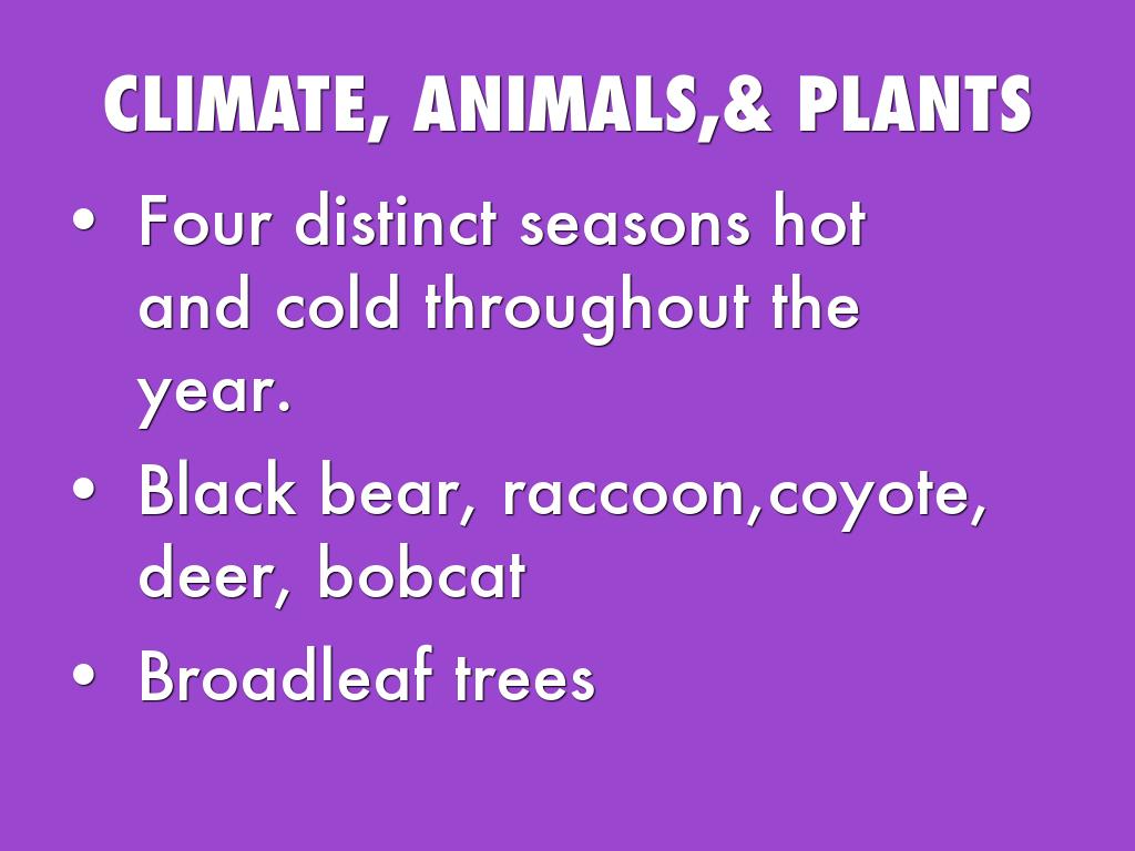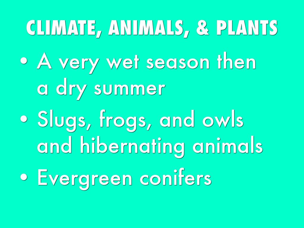 CLIMATE, ANIMALS, & VEGETATION