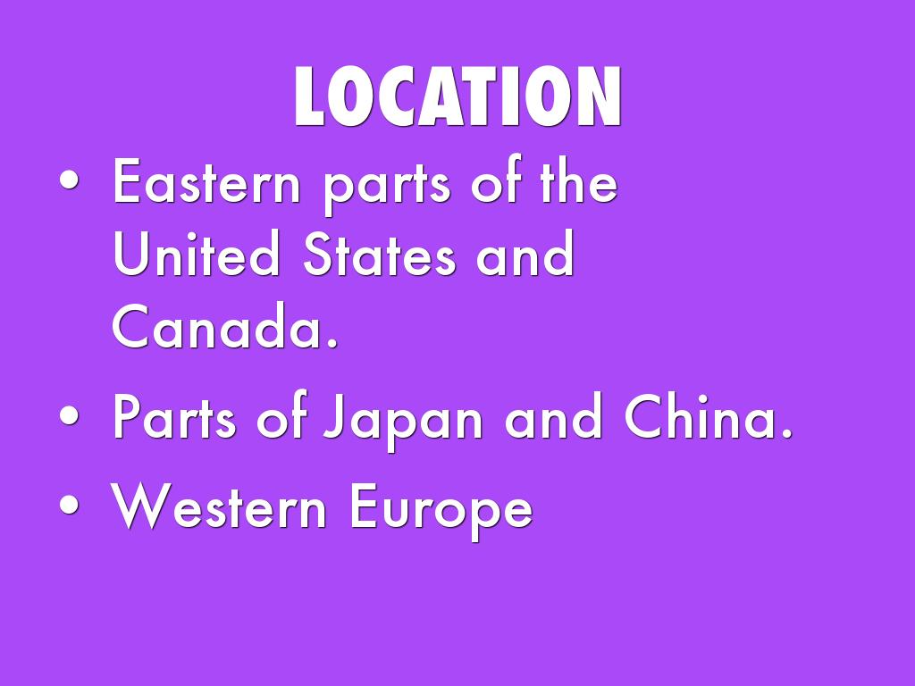 Eastern parts of the United States and Canada.