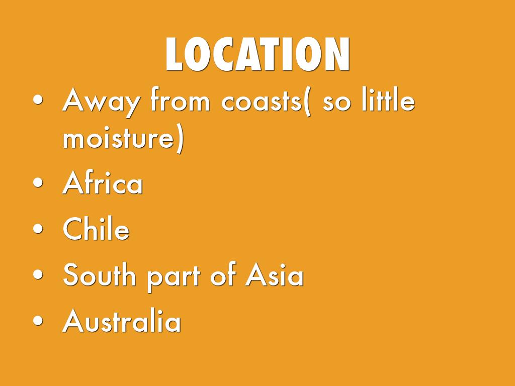 Away from coasts( so little moisture)