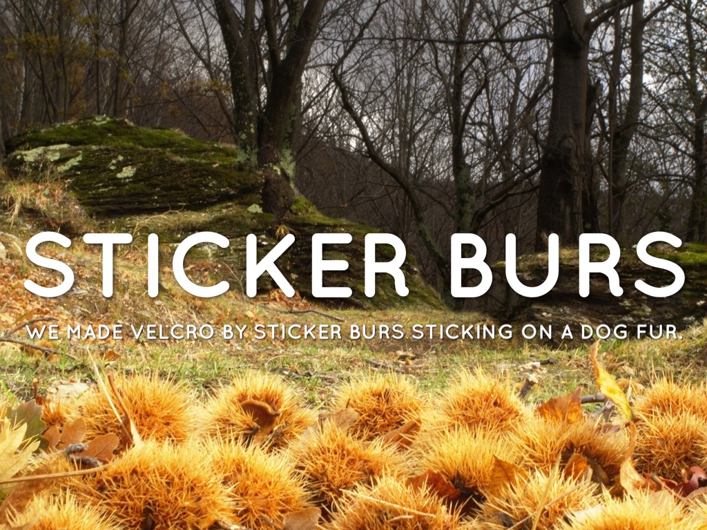 WE MADE VELCRO BY STICKER BURS STICKING ON A DOG FUR.