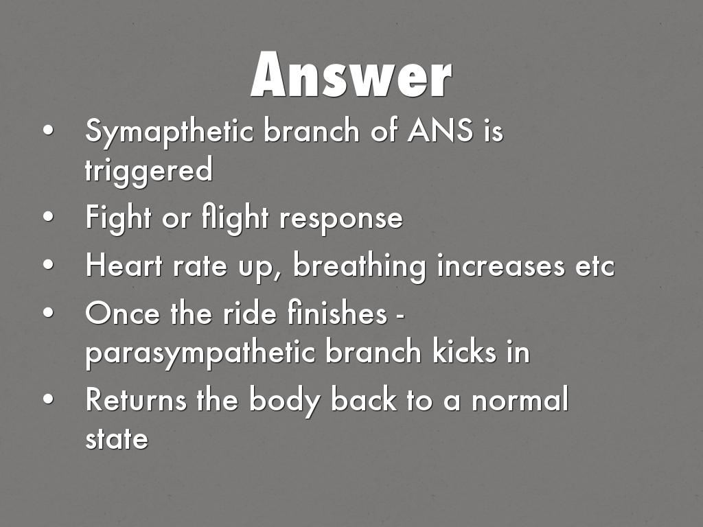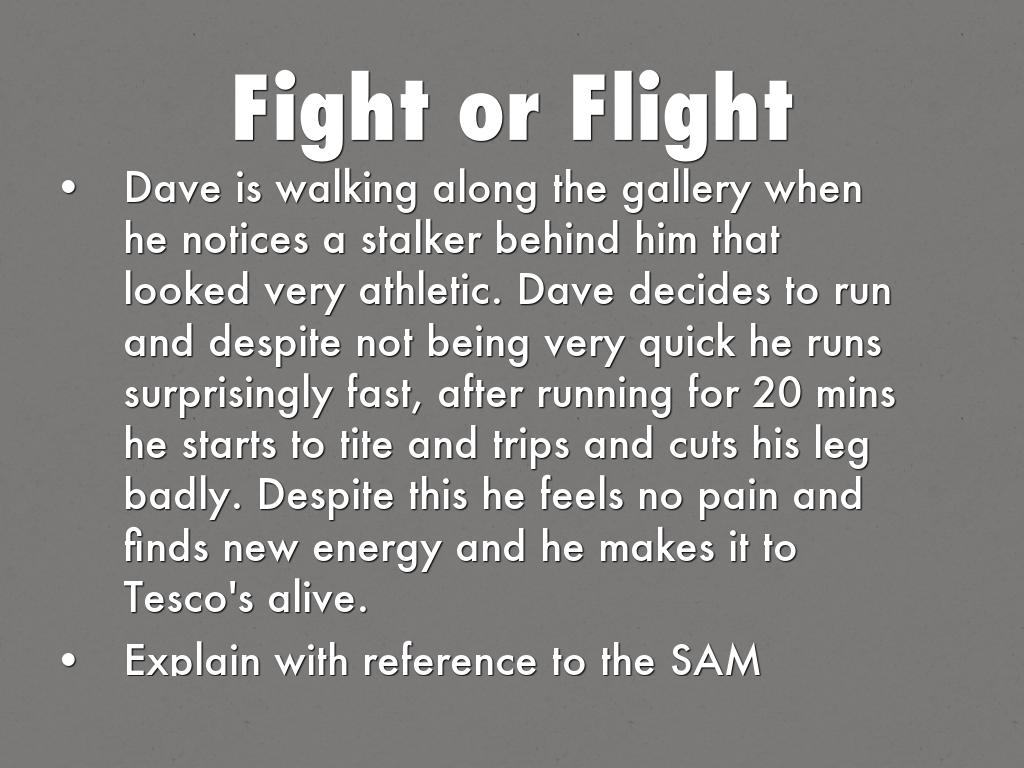 SAM - Hypothalamus, SB - ANS - Adrenal Medulla - Adrenaline and Noradrenaline - blood pressure, ATP, energy rises - speed - this is why he is faster than usual - mouth dry - butterflies, sweatty hands