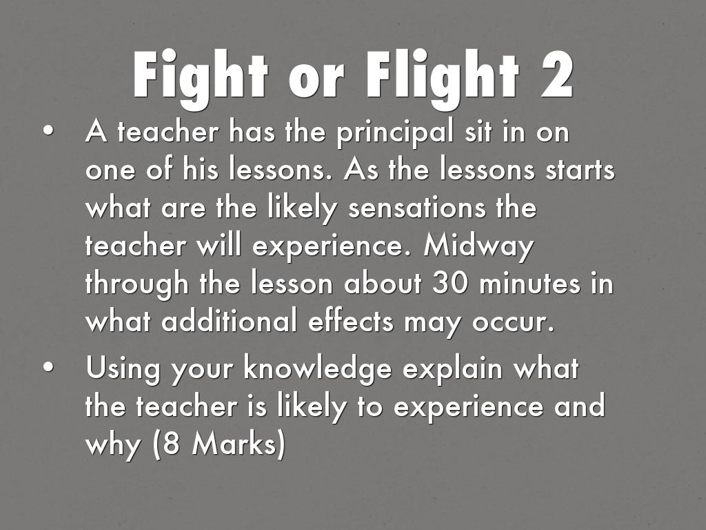 A teacher has the principal sit in on one of his lessons. As the lessons starts what are the likely sensations the teacher will experience. Midway through the lesson about 30 minutes in what additional effects may occur.