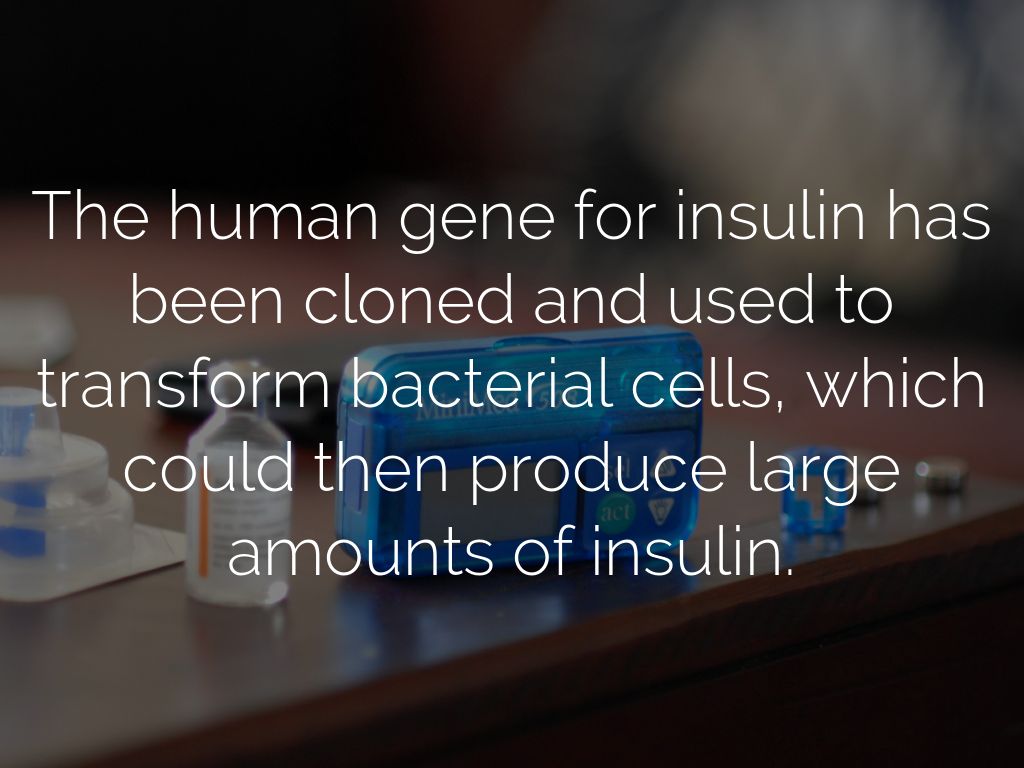 The human gene for insulin has been cloned and used to transform bacterial cells, which could then produce large amounts of insulin.