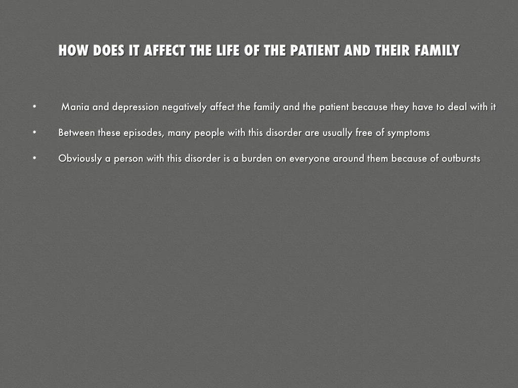 Mania and depression negatively affect the family and the patient because they have to deal with it