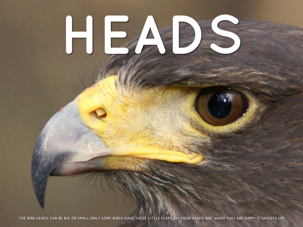 THE BIRD HEADS CAN BE BIG OR SMALL.ONLY SOME BIRDS HAVE THESE LITTLE FLAPS ON THEIR HEADS AND WHEN THEY ARE HAPPY IT SHOOTS UP!