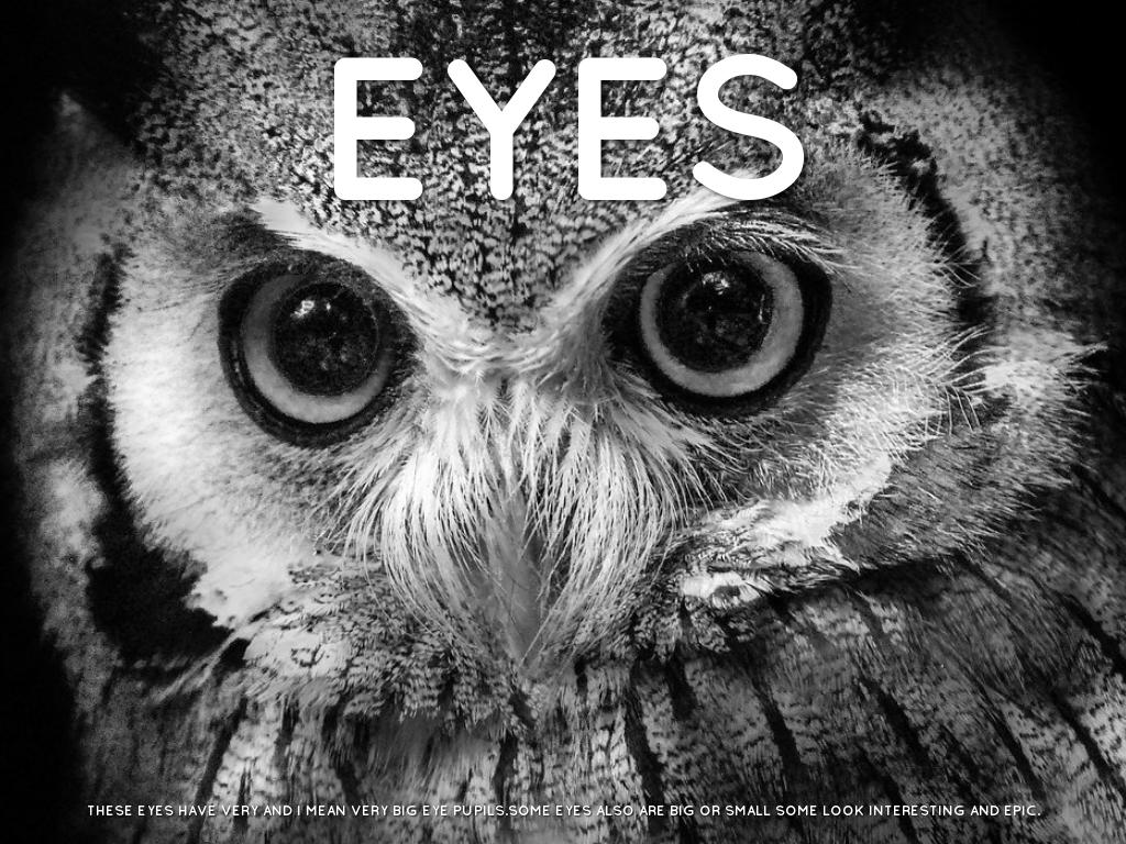 THESE EYES HAVE VERY AND I MEAN VERY BIG EYE PUPILS.SOME EYES ALSO ARE BIG OR SMALL SOME LOOK INTERESTING AND EPIC.