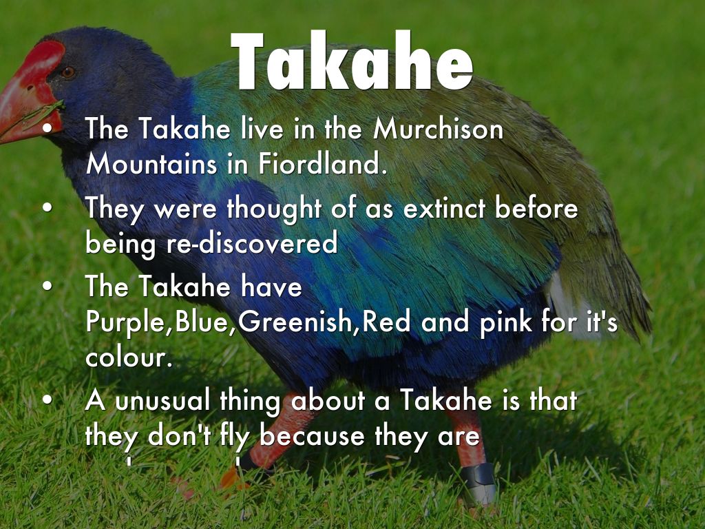 A unusual thing about a Takahe is that they don't fly because they are endangered.