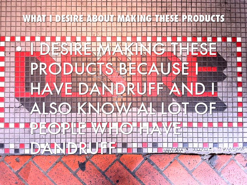 I DESIRE MAKING THESE PRODUCTS BECAUSE I HAVE DANDRUFF AND I ALSO KNOW AL LOT OF PEOPLE WHO HAVE DANDRUFF
