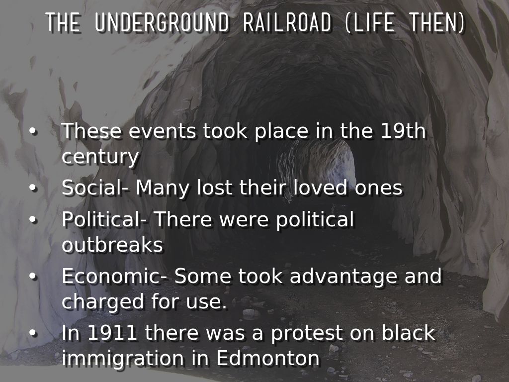 THE UNDERGROUND RAILROAD (LIFE THEN)