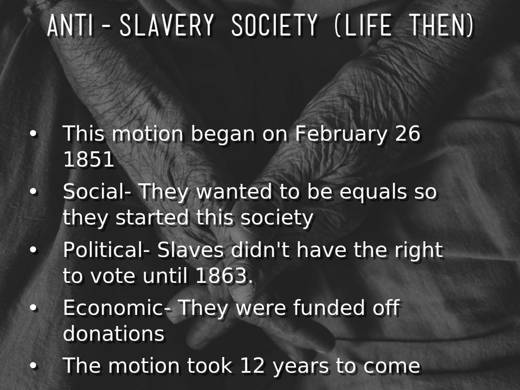 ANTI-SLAVERY SOCIETY (LIFE THEN)