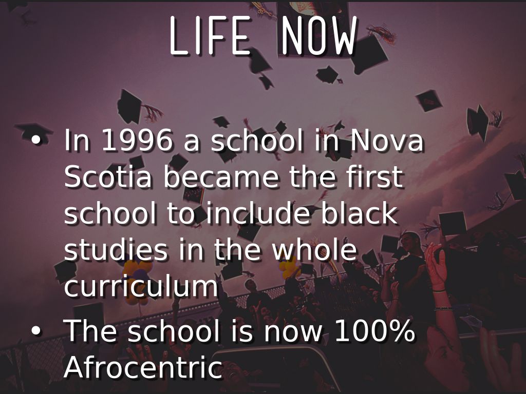 In 1996 a school in Nova Scotia became the first school to include black studies in the whole curriculum