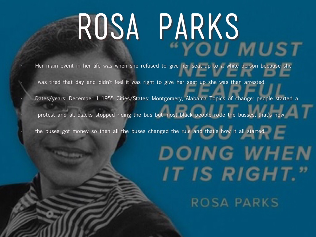 Her main event in her life was when she refused to give her seat up to a white person because she