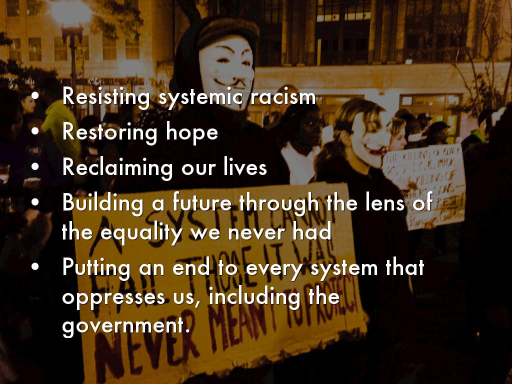 The purpose of this organization is to serve as a political intervention raising awareness for the senseless killings of black people and seeking reform of the law enforcement and judicial system.