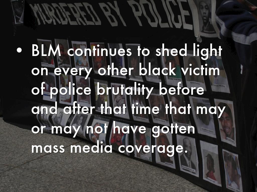 BLM continues to shed light on every other black victim of police brutality before and after that time that may or may not have gotten mass media coverage.