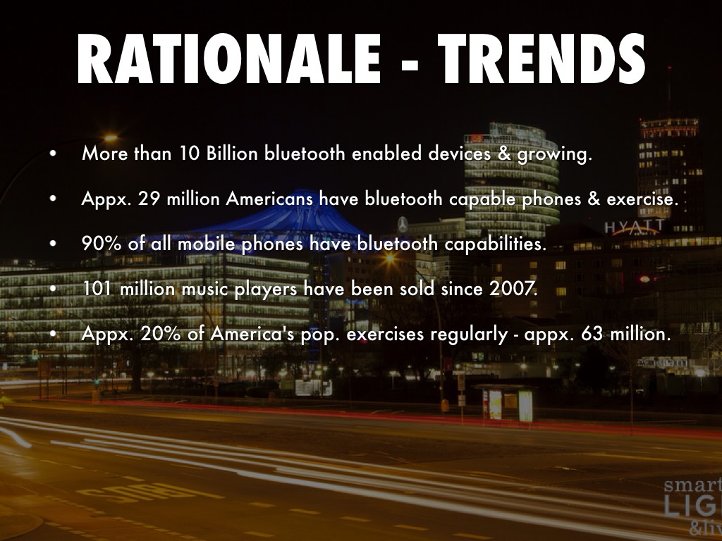 • Appx. 29 million Americans have bluetooth capable phones & exercise.