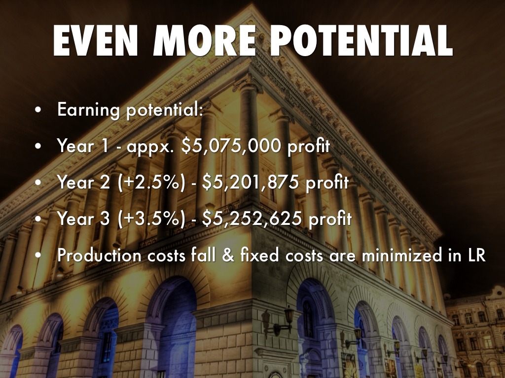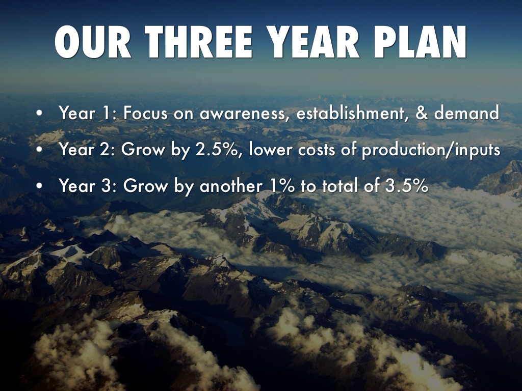 • Year 2: Grow by 2.5%, lower costs of production/inputs