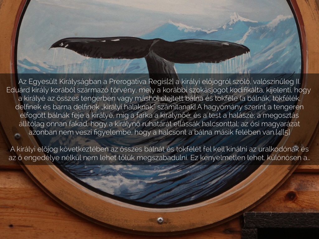 Az Egyesült Királyságban a Prerogativa Regis[2] a királyi előjogról szóló, valószínűleg II. Eduárd király korából származó törvény, mely a korábbi szokásjogot kodifikálta, kijelenti, hogy a királyé az összes tengerben vagy máshol elejtett bálna és tokféle (a bálnák, tokfélék, delfinek és barna delfinek „királyi halaknak” számítanak[.A hagyomány szerint a tengeren elfogott bálnák feje a királyé, míg a farka a királynőé, és a test a halászé; a megosztás állítólag onnan fakad, hogy a királynő ruhatárát ellássák halcsonttal; az ősi magyarázat azonban nem veszi figyelembe, hogy a halcsont a bálna másik felében van.[4][5]