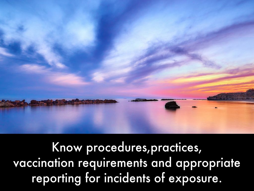 vaccination requirements and appropriate reporting for incidents of exposure.