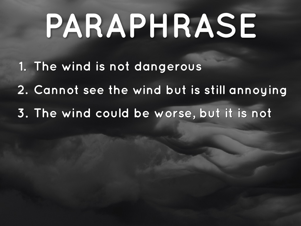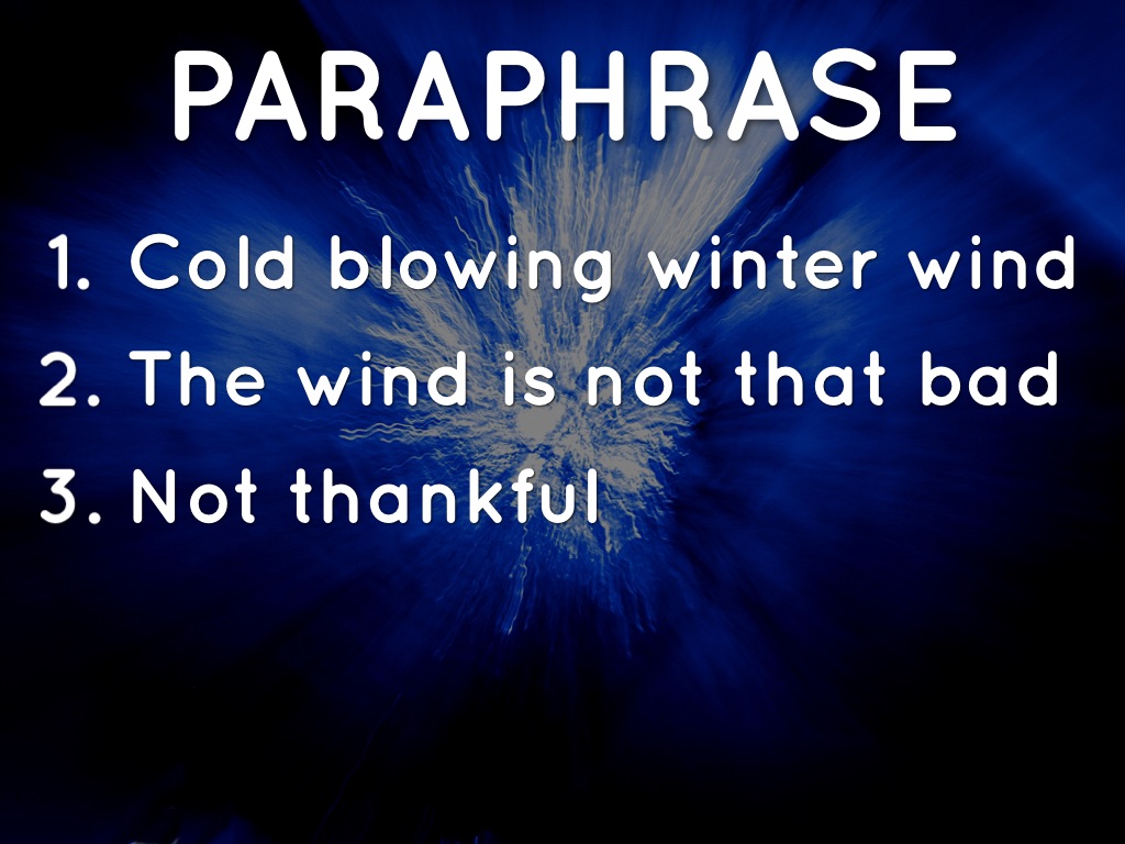 Theme: The wind is cold but could be way worse. (Thou art not so unkind)