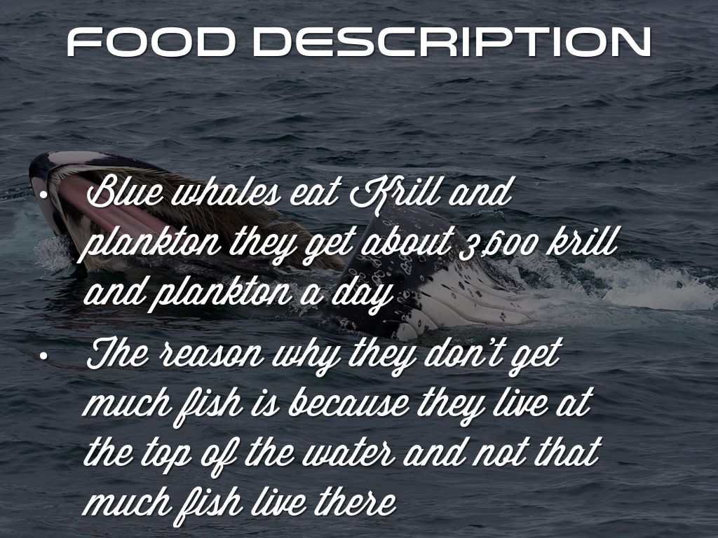 Blue whales eat Krill and plankton they get about 3,600 krill and plankton a day