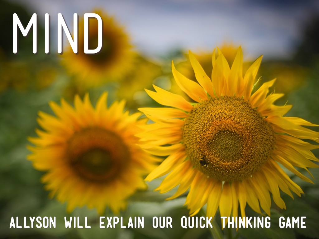 ALLYSON WILL EXPLAIN OUR QUICK THINKING GAME