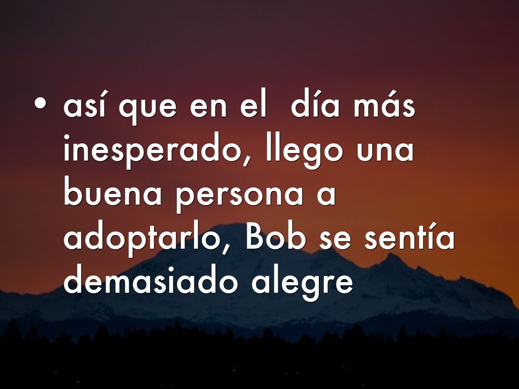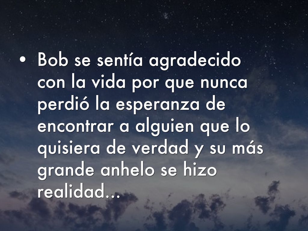 Bob se sentía agradecido con la vida por que nunca perdió la esperanza de encontrar a alguien que lo quisiera de verdad y su más grande anhelo se hizo realidad...