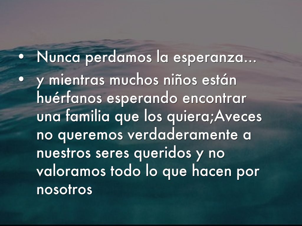 y mientras muchos niños están huérfanos esperando encontrar una familia que los quiera;Aveces no queremos verdaderamente a nuestros seres queridos y no valoramos todo lo que hacen por nosotros