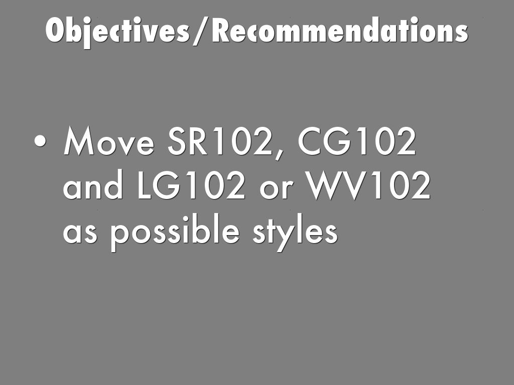 - Move SR102, CG102 and LG102 or WV102 as possible styles