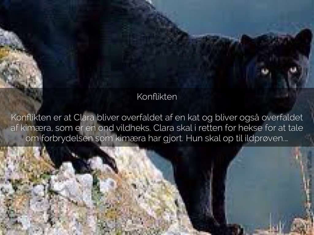 Konflikten er at Clara bliver overfaldet af en kat og bliver også overfaldet af kimæra, som er en ond vildheks. Clara skal i retten for hekse for at tale om forbrydelsen som kimæra har gjort. Hun skal op til ildprøven.
