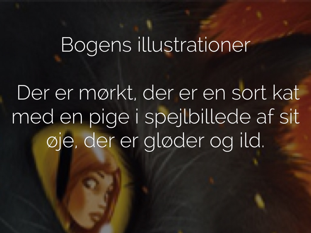Der er mørkt, der er en sort kat med en pige i spejlbillede af sit øje, der er gløder og ild.