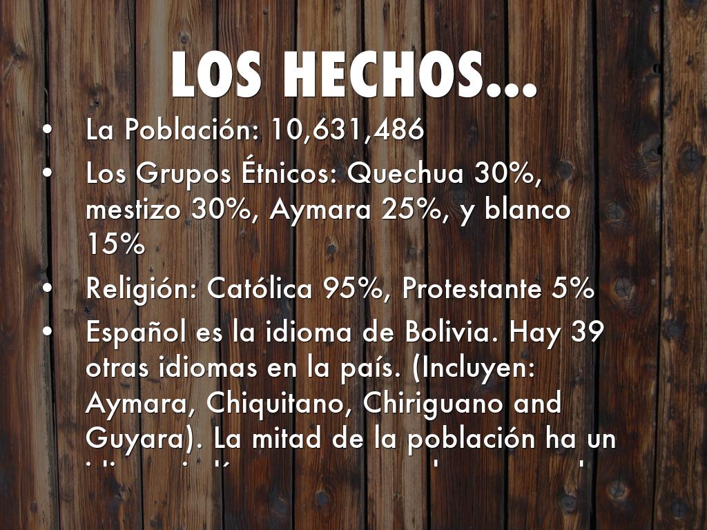 • Español es la idioma de Bolivia. Hay 39 otras idiomas en la país. (Incluyen: Aymara, Chiquitano, Chiriguano and Guyara). La mitad de la población ha un idioma indígena que es su lengua madre. La español de Bolivia es diferente de región a región.