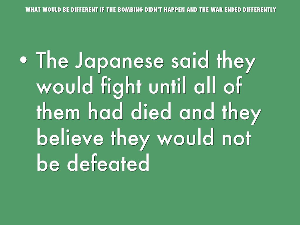 WHAT WOULD BE DIFFERENT IF THE BOMBING DIDN'T HAPPEN AND THE WAR ENDED DIFFERENTLY