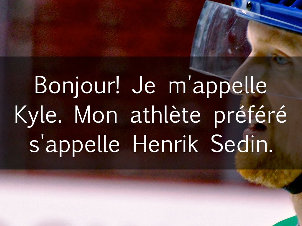 Bonjour! Je m'appelle Kyle. Mon athlète préféré s'appelle Henrik Sedin.