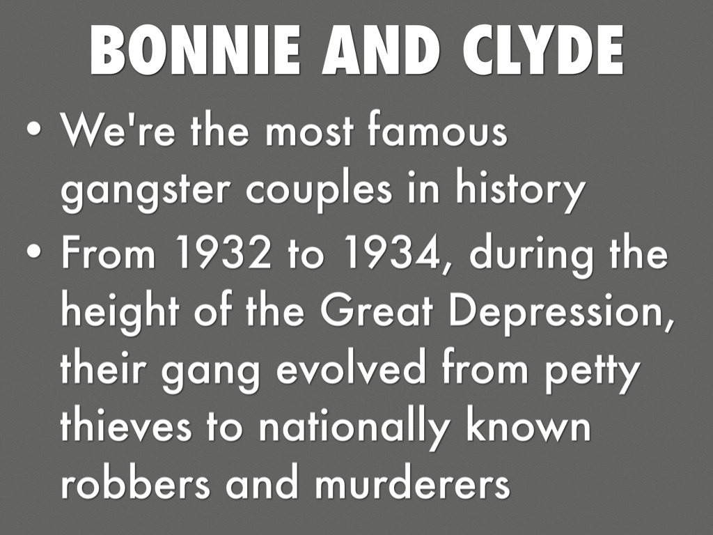 From 1932 to 1934, during the height of the Great Depression, their gang evolved from petty thieves to nationally known robbers and murderers