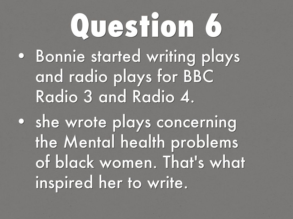 • she wrote plays concerning the Mental health problems of black women. That's what inspired her to write.