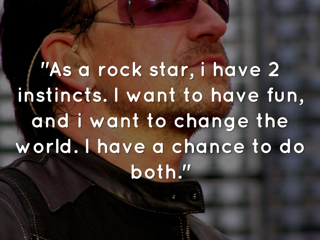 "As a rock star, i have 2 instincts. I want to have fun, and i want to change the world. I have a chance to do both."
