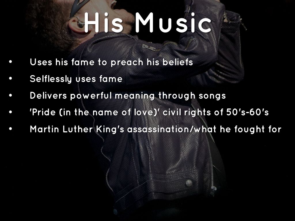 • 'Pride (in the name of love)' civil rights of 50's-60's