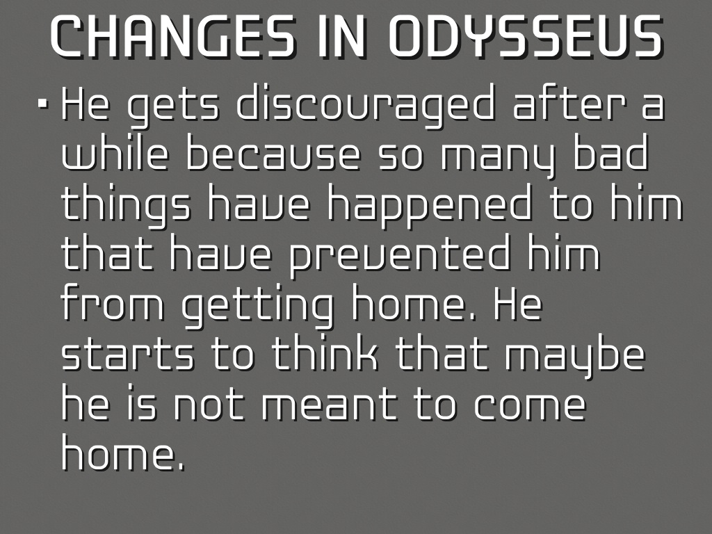He gets discouraged after a while because so many bad things have happened to him that have prevented him from getting home. He starts to think that maybe he is not meant to come home.
